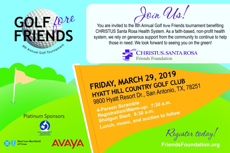 Join us on the green for a beautiful round of golf and fundraising on Friday, March 29, at the Hyatt Hill Country Golf Club. As always, gifts raised from Golf Fore Friends will benefit CHRISTUS Santa Rosa Hospitals.