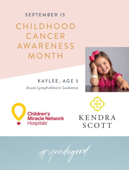 Help our little fighters during #ChildhoodCancerAwarenessMonth! Kendra Scott, a proud partner of Children’s Miracle Network Hospitals, has launched its first ever in-store point of sale campaign during the month of September. In honor of Childhood Cancer Awareness month, all Kendra Scott stores are fundraising for their local CMN Hospital.