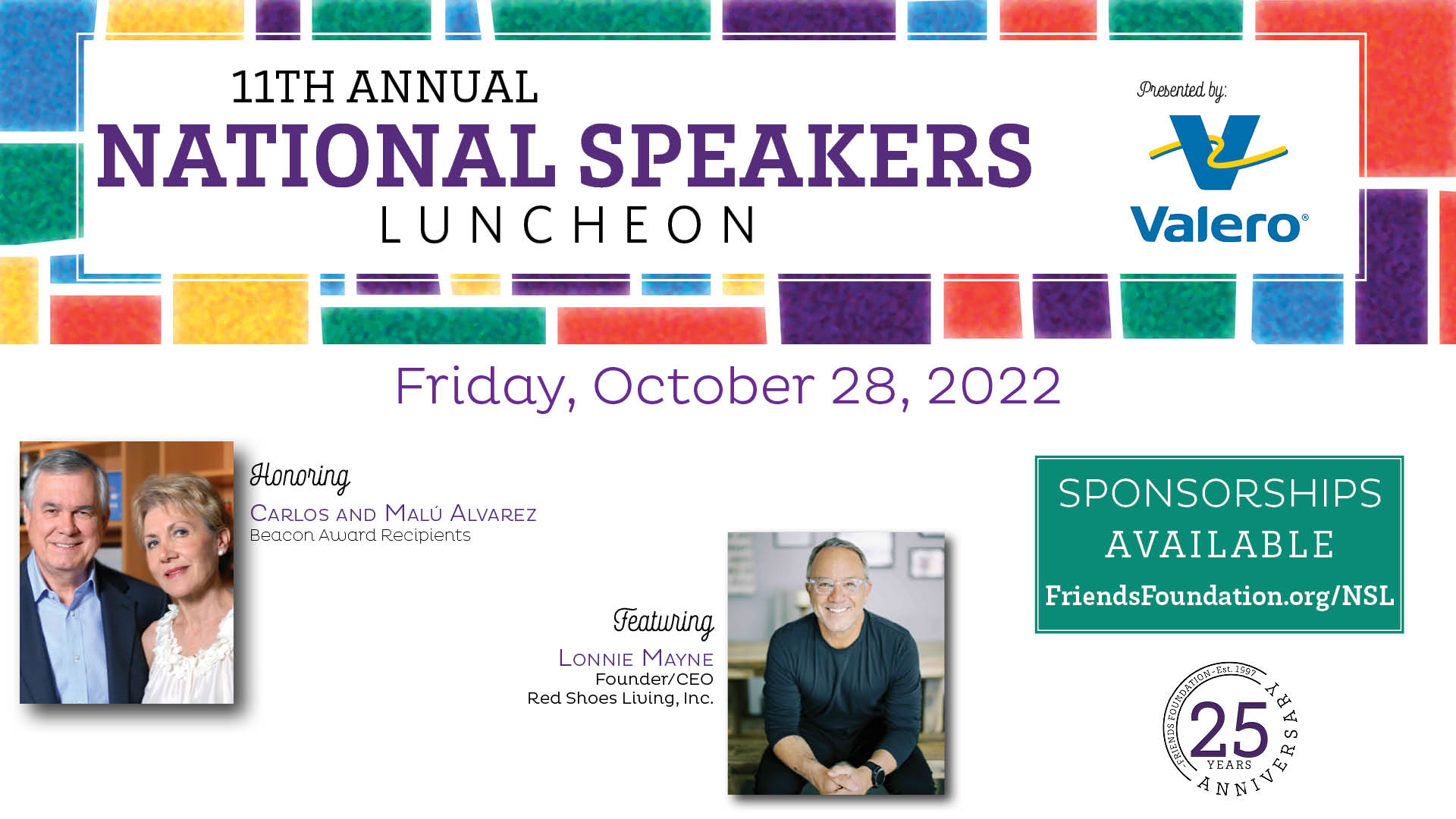 You won’t want to miss this event. This year’s luncheon is presented by Valero. Several sponsorship opportunities for the National Speakers Luncheon are still available. For information about how you can be part of this special event, visit our website, call 210.704.2800 or email FriendsFoundation@ChristusHealth.org.