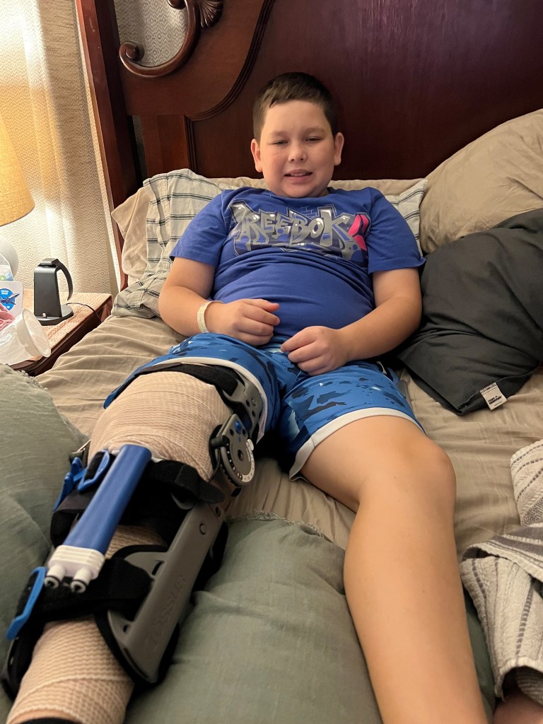 Austin’s surgery lasted several hours. As Austin began to wake up, Dr. Stavinoha provided his parents with photos of his knee during the procedure and reassured them he would be back to stealing home plate in no time. Soon enough, Austin was awake, and his healing journey began.